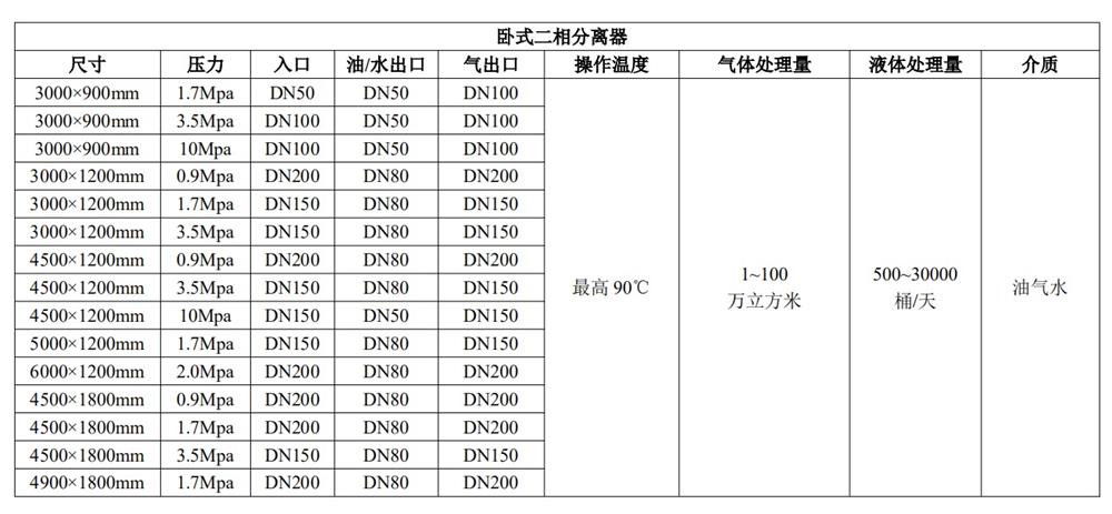 臥式分離器可用于測試分離器、生產分離器、兩相分離器(液液/油水分離器)、三相分離器(油氣水分離器)和特殊應用分離器。