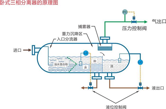 用途:分散程度不高情況下的油氣水三相的粗分離
